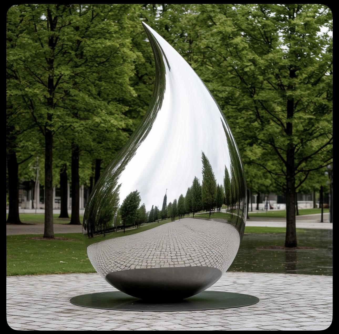 А зеркальный объект из INOX отражает динамику, инновации и современность.